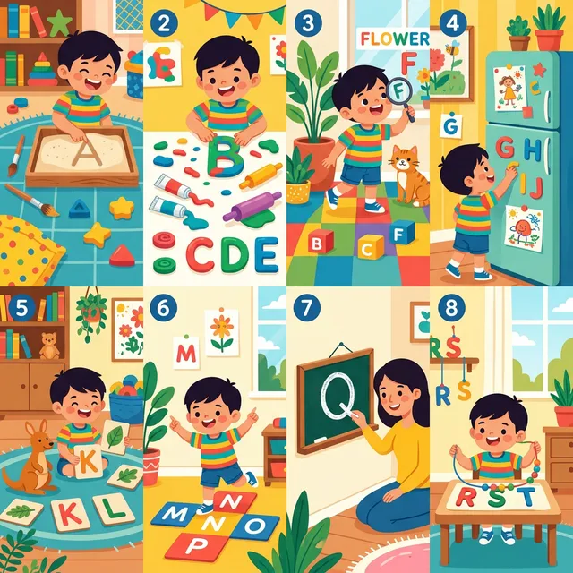 Viết chữ cái lên bìa cứng, cắt mỗi chữ thành 2–3 mảnh. Bé phải ghép lại đúng hình dạng chữ — rèn luyện cả tư duy không gian.