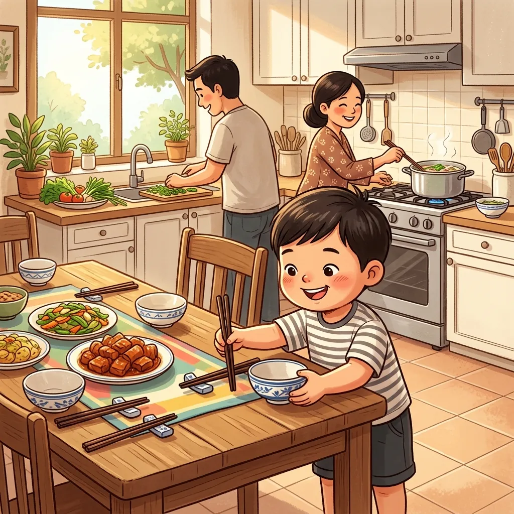 - Cùng mẹ dọn mâm cơm, sắp xếp thìa/đũa