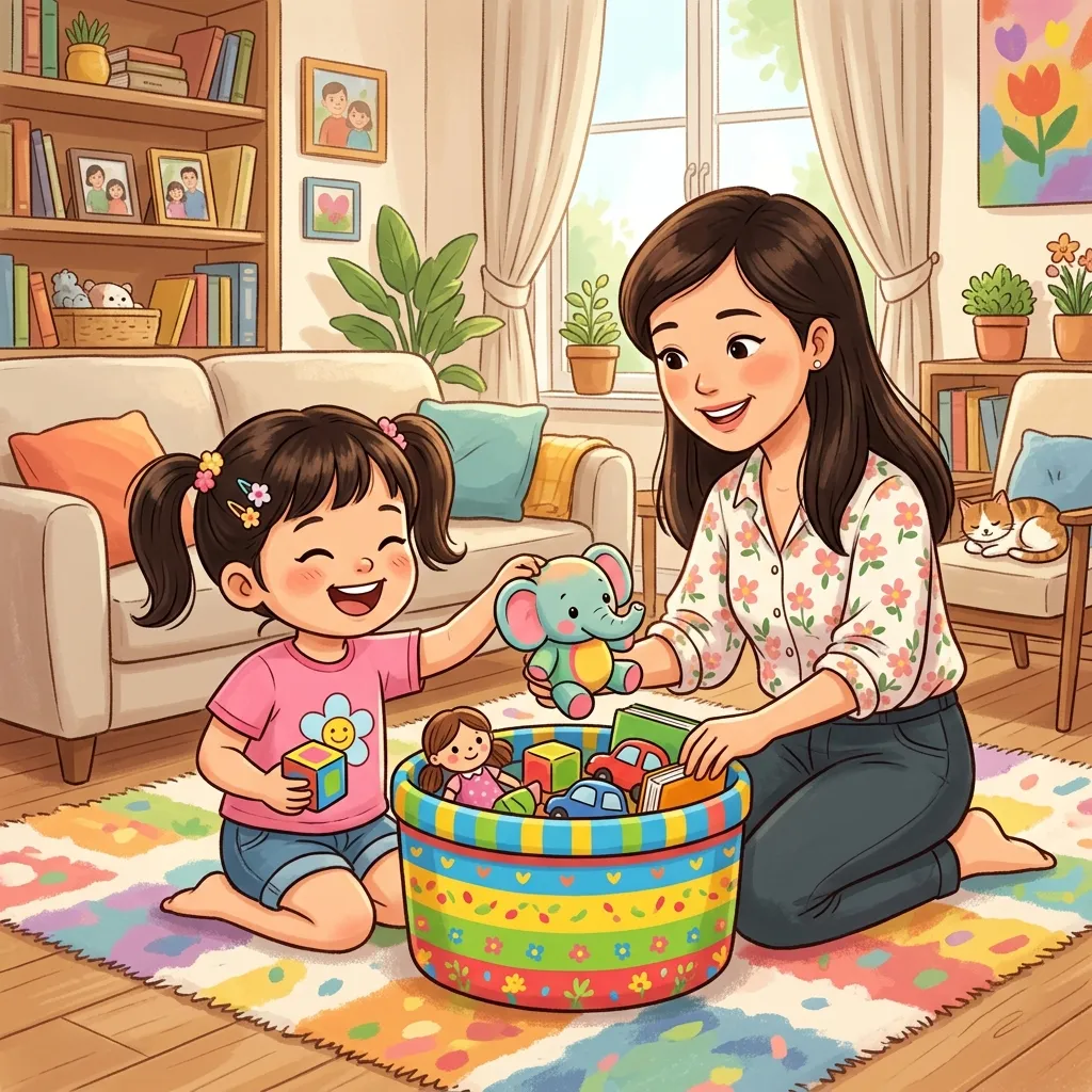 | 3–4 tuổi | Dọn đồ chơi, bỏ quần áo bẩn vào giỏ, lấy sách cất kệ | Phân loại, sắp xếp |