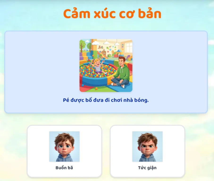 Trò chơi Cảm Xúc trên Cú Thông Minh mang đến những bài học nhẹ nhàng về thế giới nội tâm tinh tế của bé.