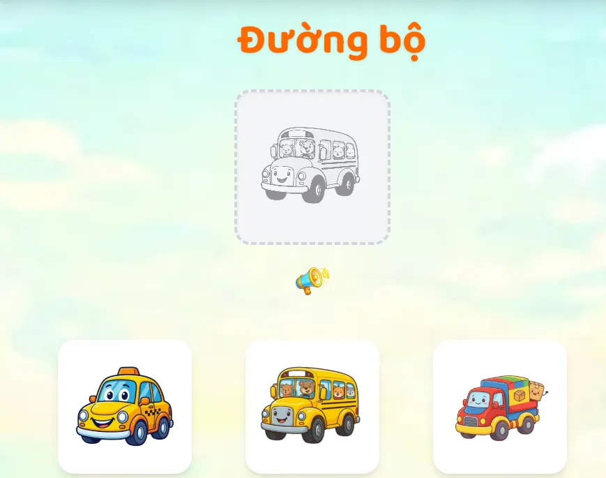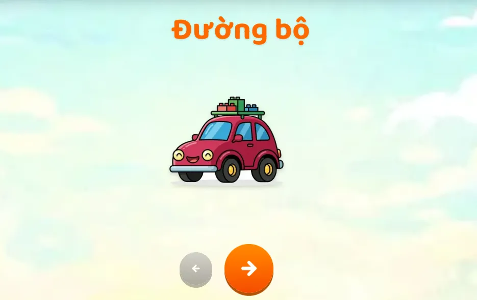 Bé học tên các phương tiện đường bộ, đường thủy, hàng không và nhận biết công dụng qua trò chơi tương tác.