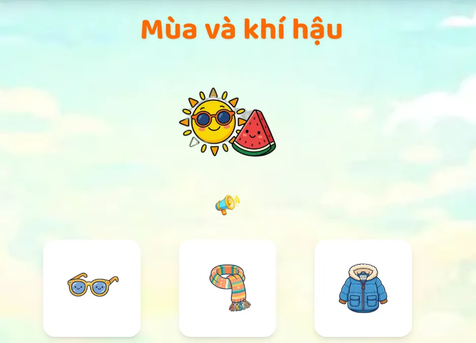 - Biểu tượng: Sử dụng các icon thời tiết chuẩn để bé làm quen với các bản tin dự báo sau này.