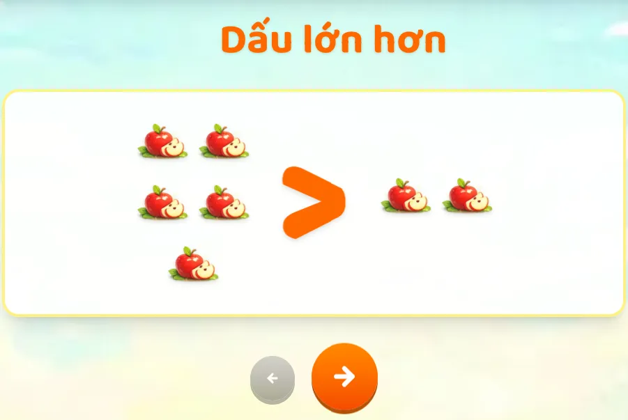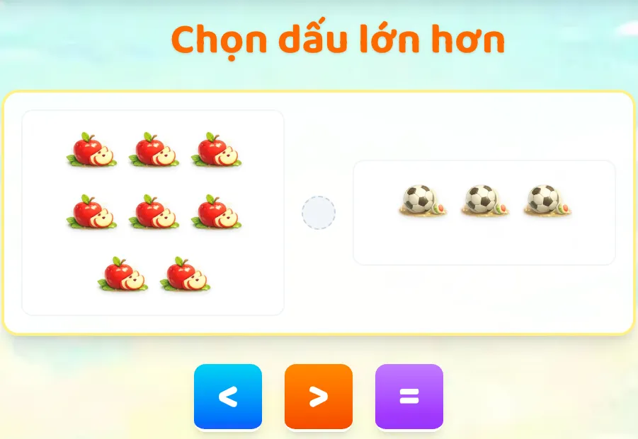 Mục tiêu lớn nhất là để bé yêu thích toán học, không phải làm đúng mọi câu hỏi. Với trò chơi So sánh Số Lượng, mỗi lần chạm là một trải nghiệm, mỗi câu trả lời là một bước tiến nhỏ trong hành trình khôn lớn!